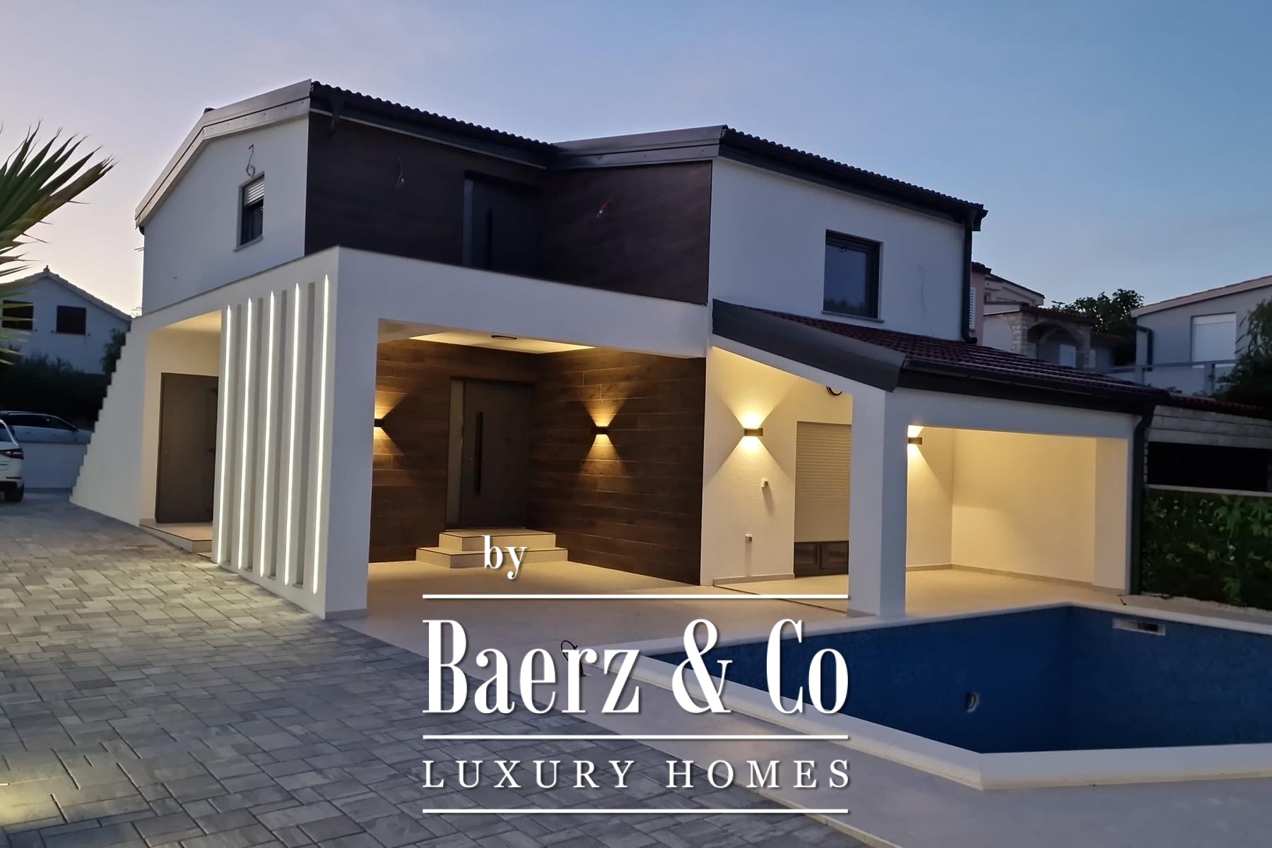 Zadar, Vir - Located in an attractive area near the popular Jadro Beach on the island of Vir, this modern semi-detached house with a heated pool and two completely separate apartments is ideal for multi-generational living or tourist rental. Situated in a quiet street yet within walking distance to the center and the beach, it offers both privacy and comfort.Key features