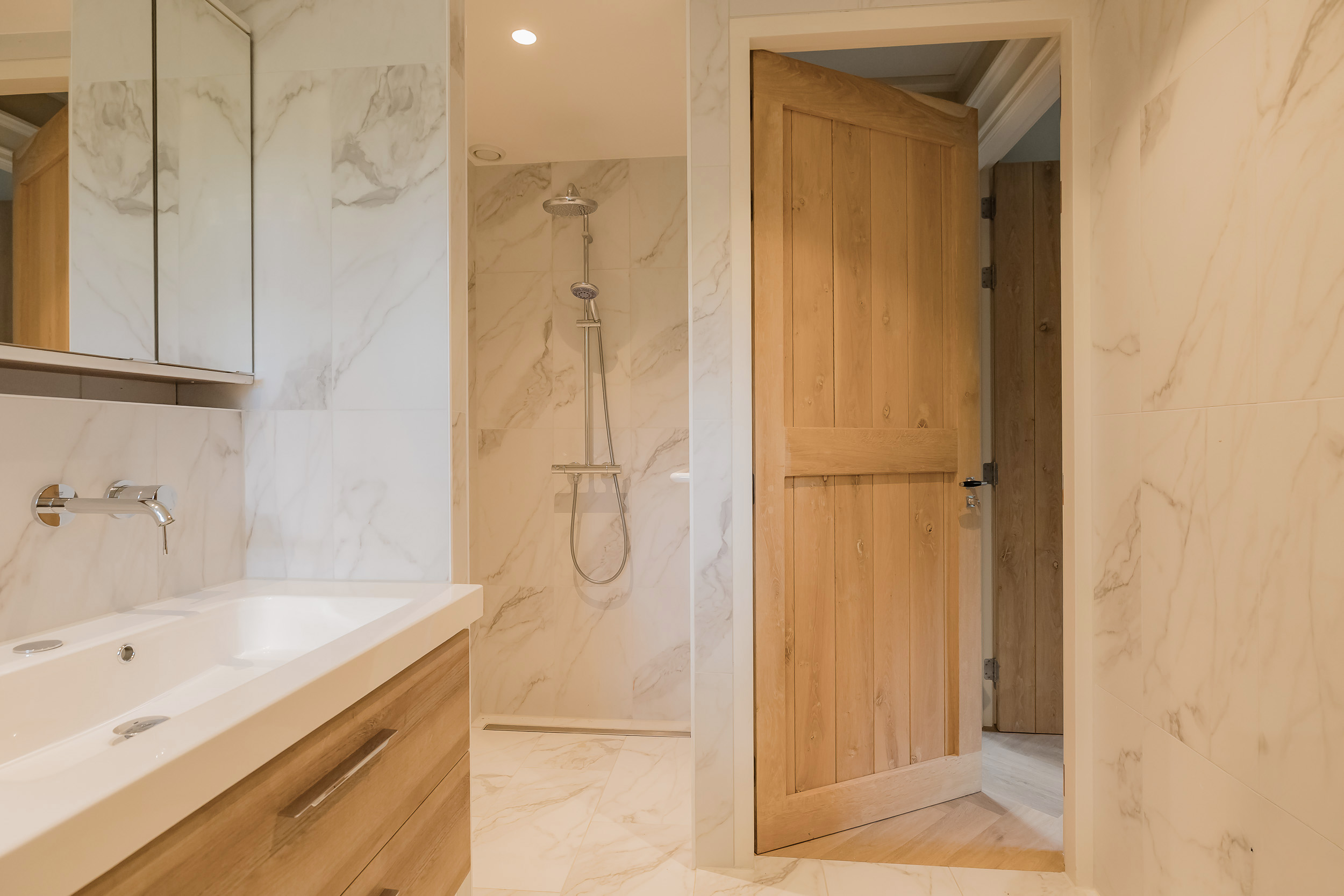 De bovenverdieping heeft een ruime overloop met dakramen voor extra licht. De royale hoofdslaapkamer beschikt over een slim geplaatste kleedkamer en een eigen luxe badkamer met ligbad, inloop-douche, groot wastafelmeubel, een toilet en een urinoir. Daarnaast zijn er nog twee ruime slaapkamers en een tweede badkamer, perfect voor gezin of gasten. Via de overloop is de entresol bereikbaar welke ook gebruikt kan worden als logeerkamer en dakkapellen zorgen op de verdieping voor extra ruimte en lichtinval. Bovendien is er nog een vliering.