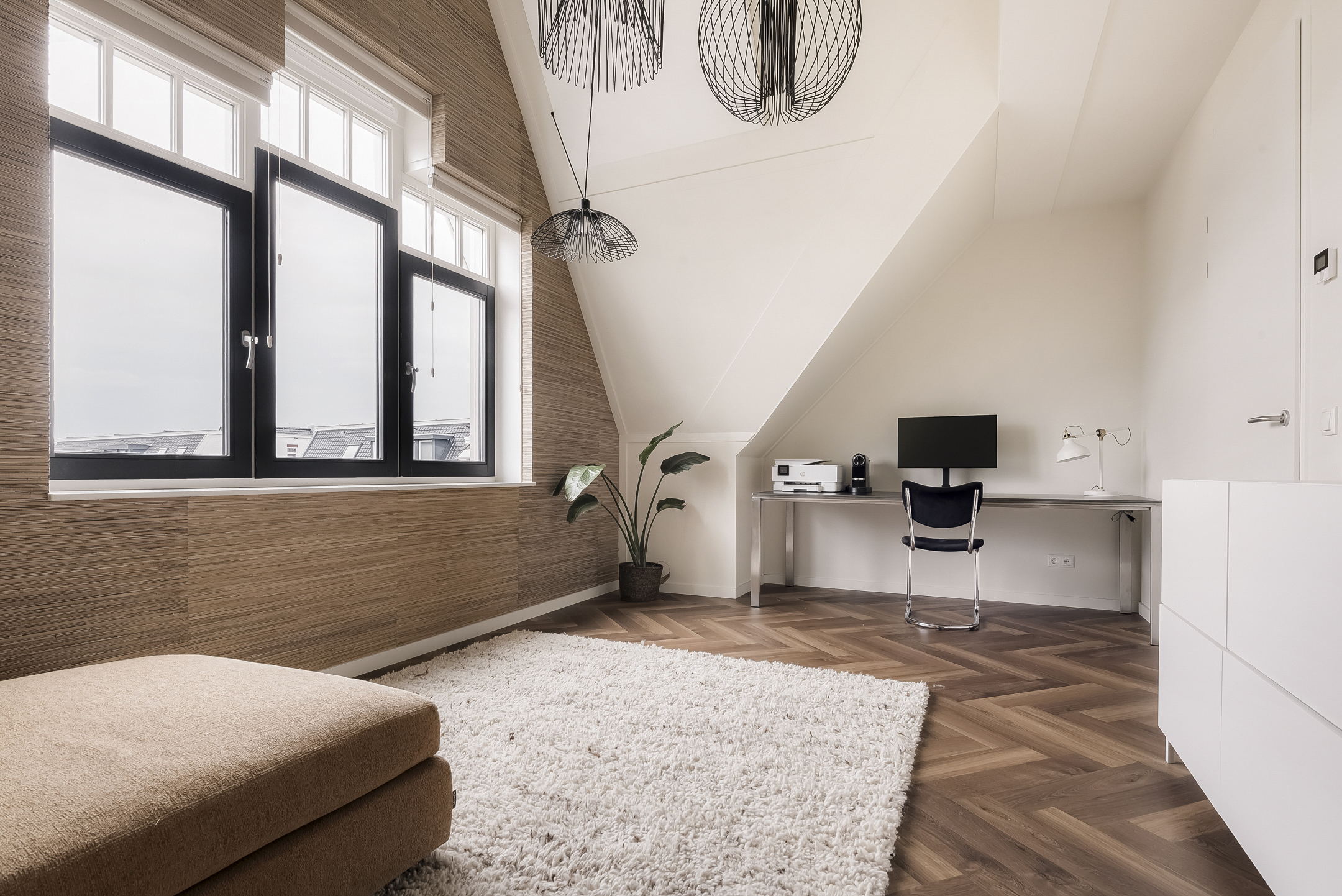 De slaapkamer aan de voorzijde is bijzonder dankzij het indrukwekkende plafond van maar liefst 4,5 meter hoog, wat deze kamer een ruimtelijk en uniek karakter geeft. Aan de achterzijde bevindt zich een tweede slaapkamer, gelegen naast de badkamer.
