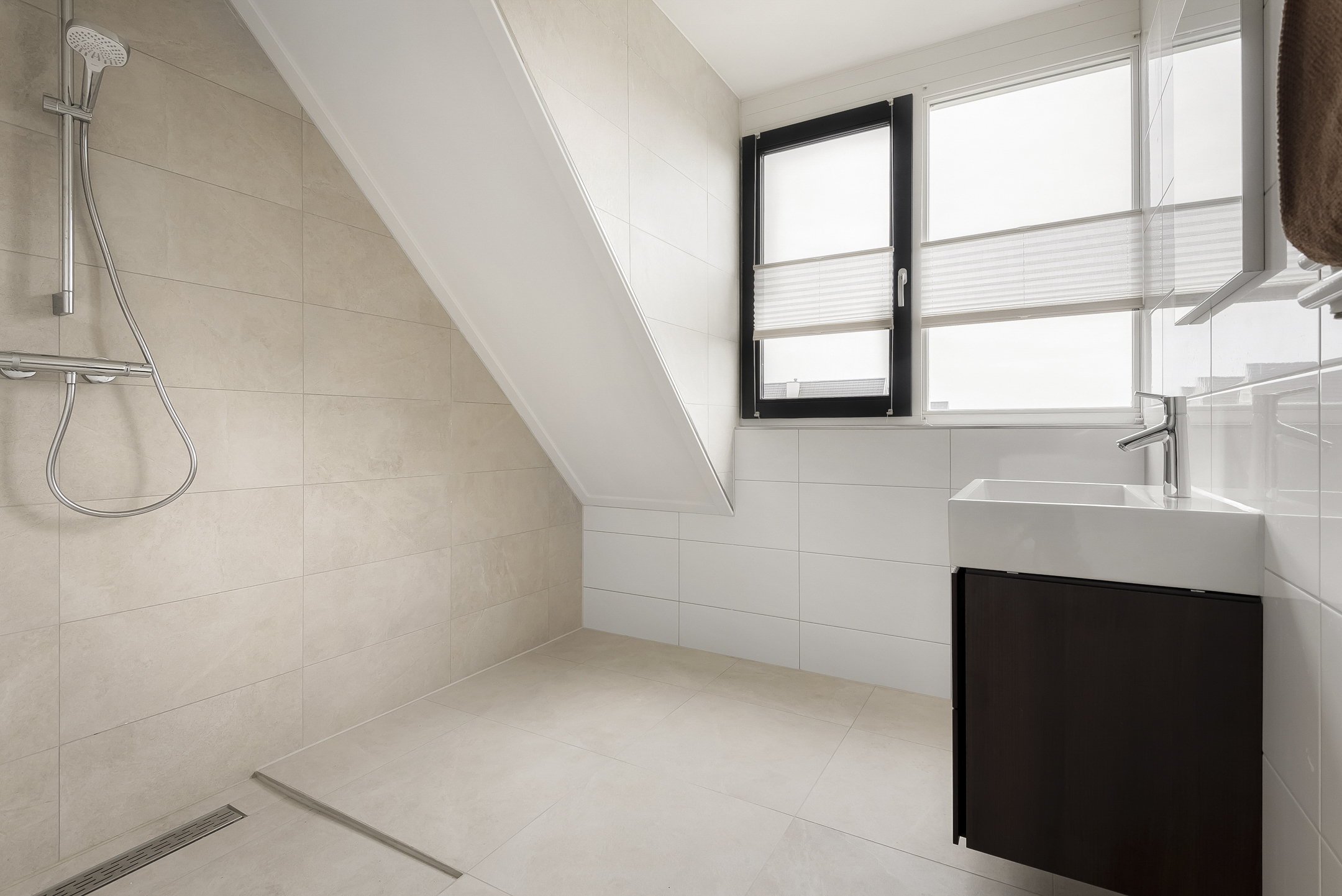 De tweede badkamer heeft een inloopdouche voorzien van draingoot, een wastafel in meubel, een designradiator en een dakkapel die zorgt voor veel lichtinval. Tegenover de badkamer bevindt zich een separaat toilet, voor extra comfort.