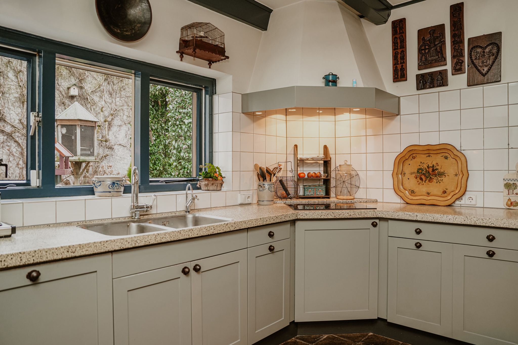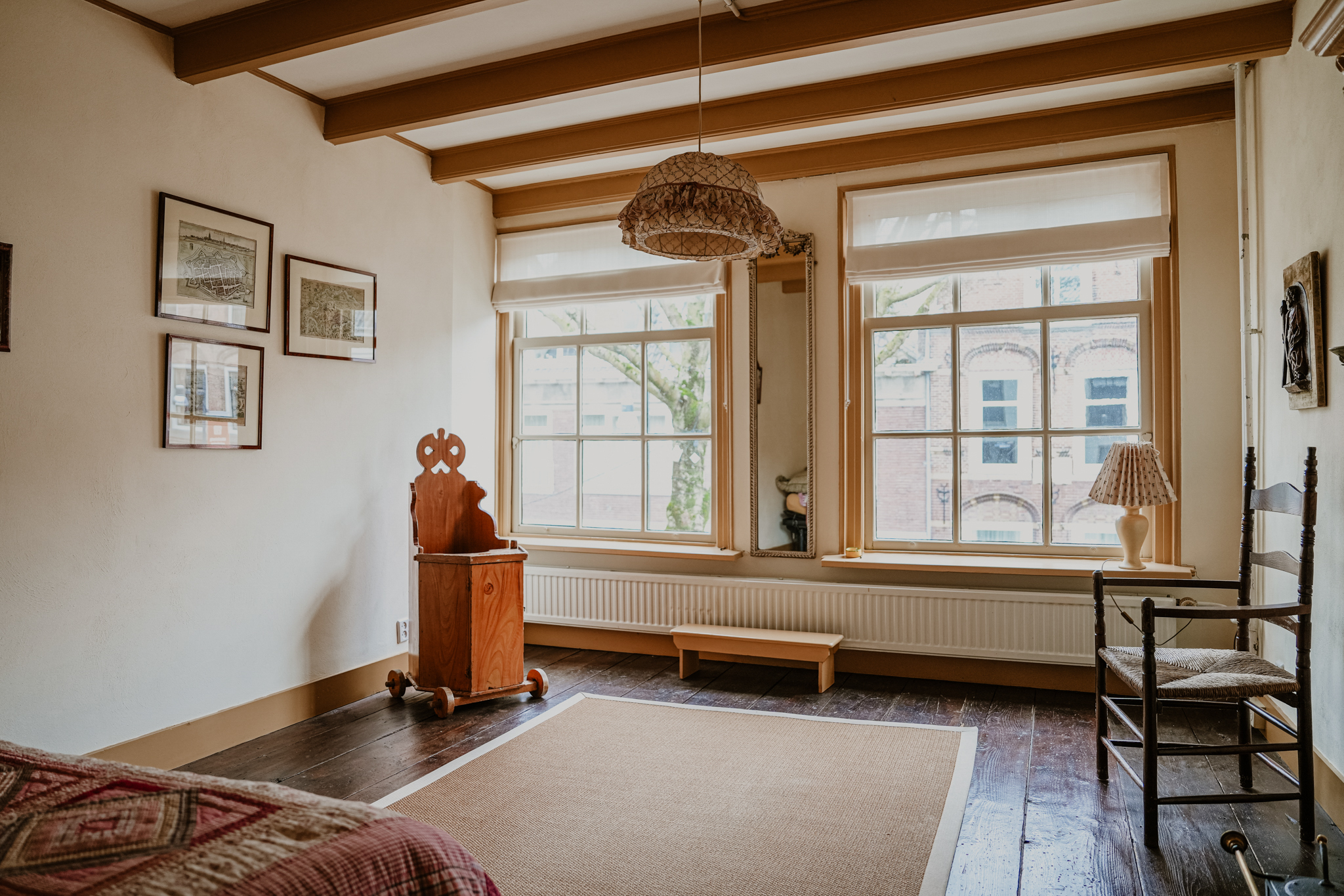 Boven de keuken bevindt zich een werkkamer, bereikbaar via een vaste trap. Vanuit deze kamer is zicht op de achtergevel van het pand. Aan het trappenhuis grenst een sfeervolle slaap-/werkkamer met visgraatparket en houten lambrisering. Er zijn twee 24-ruits schuifvensters, vanwaar zicht is op de werkkamer boven de keuken.