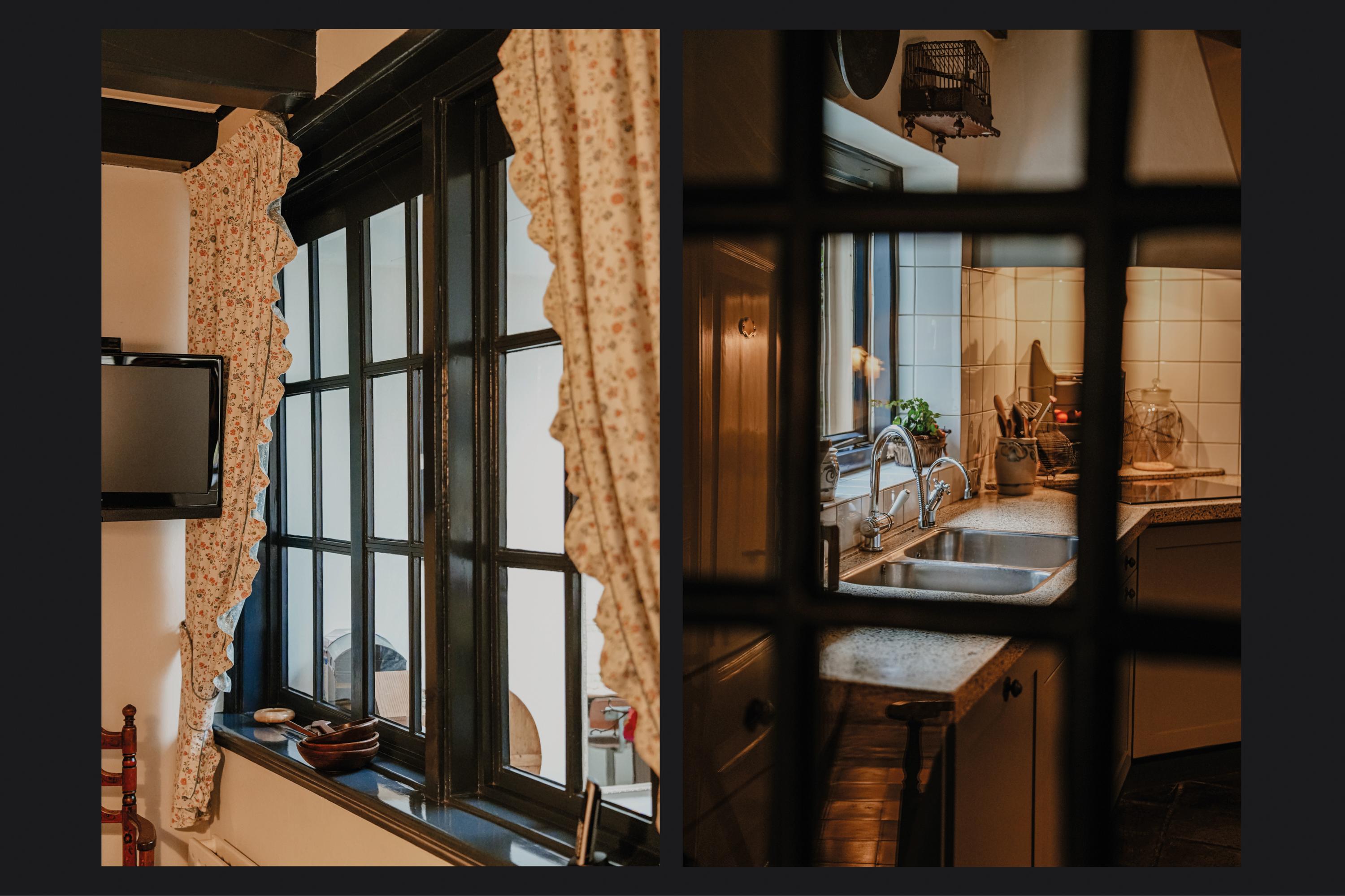 Overloop; logeerkamer in het hoofdhuis en een werkkamer boven de keuken op de tussenverdieping