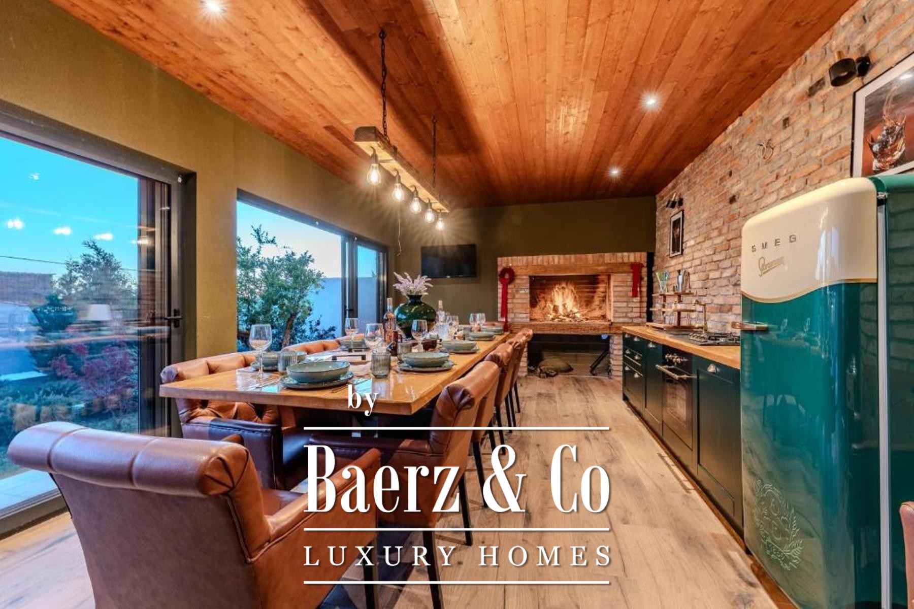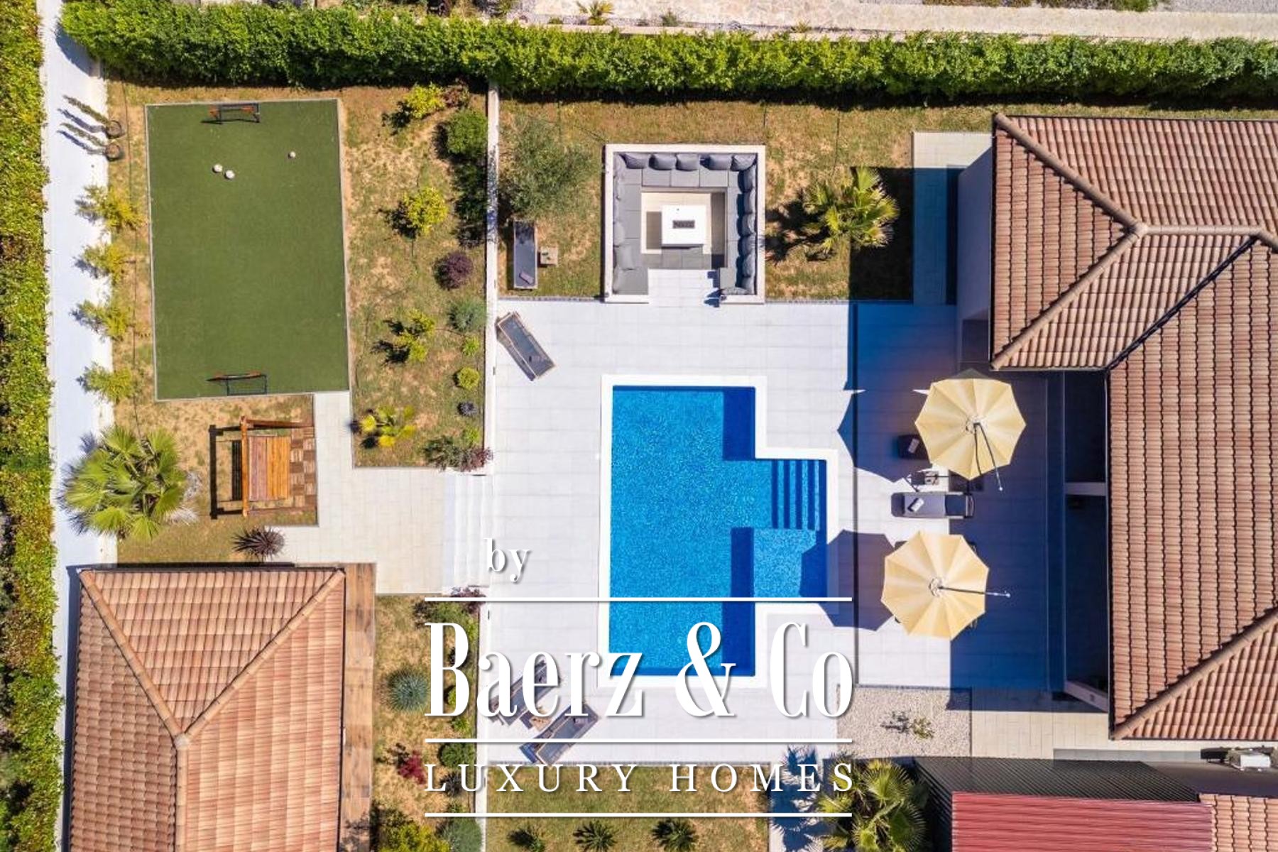 Met een woonoppervlakte van 483 m² is de villa helder en met oog voor detail ingedeeld. Een royale woonkamer en open keuken vangen het licht en lopen naadloos over in de tuin, waar een privézwembad uitnodigt tot ontspannen middagen of gezellige avonden. Drie zorgvuldig ingerichte slaapkamers, elk voorzien van een eigen en suite badkamer, bieden comfort en privacy in het hele huis. In de tuin voegt een traditionele taveerne een subtiele knipoog naar het verleden toe, perfect voor lange maaltijden of rustige momenten van reflectie.
