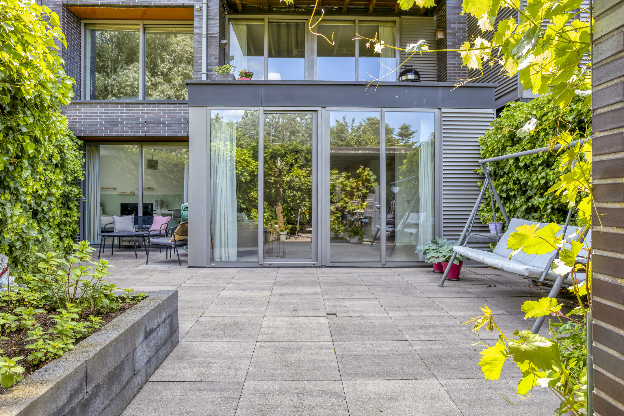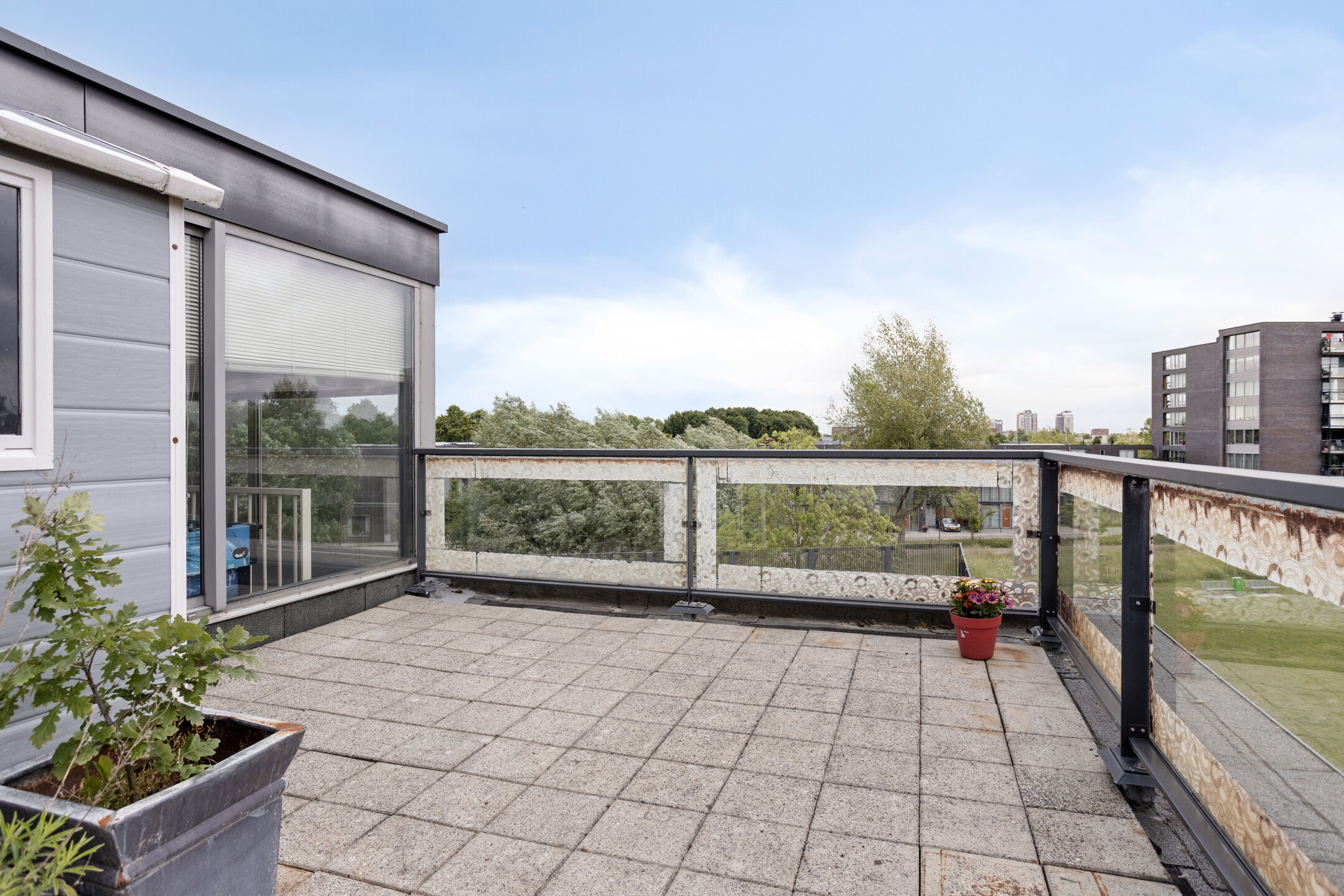 - voortuin, achtertuin, 3 balkons, 3 dakterrassen