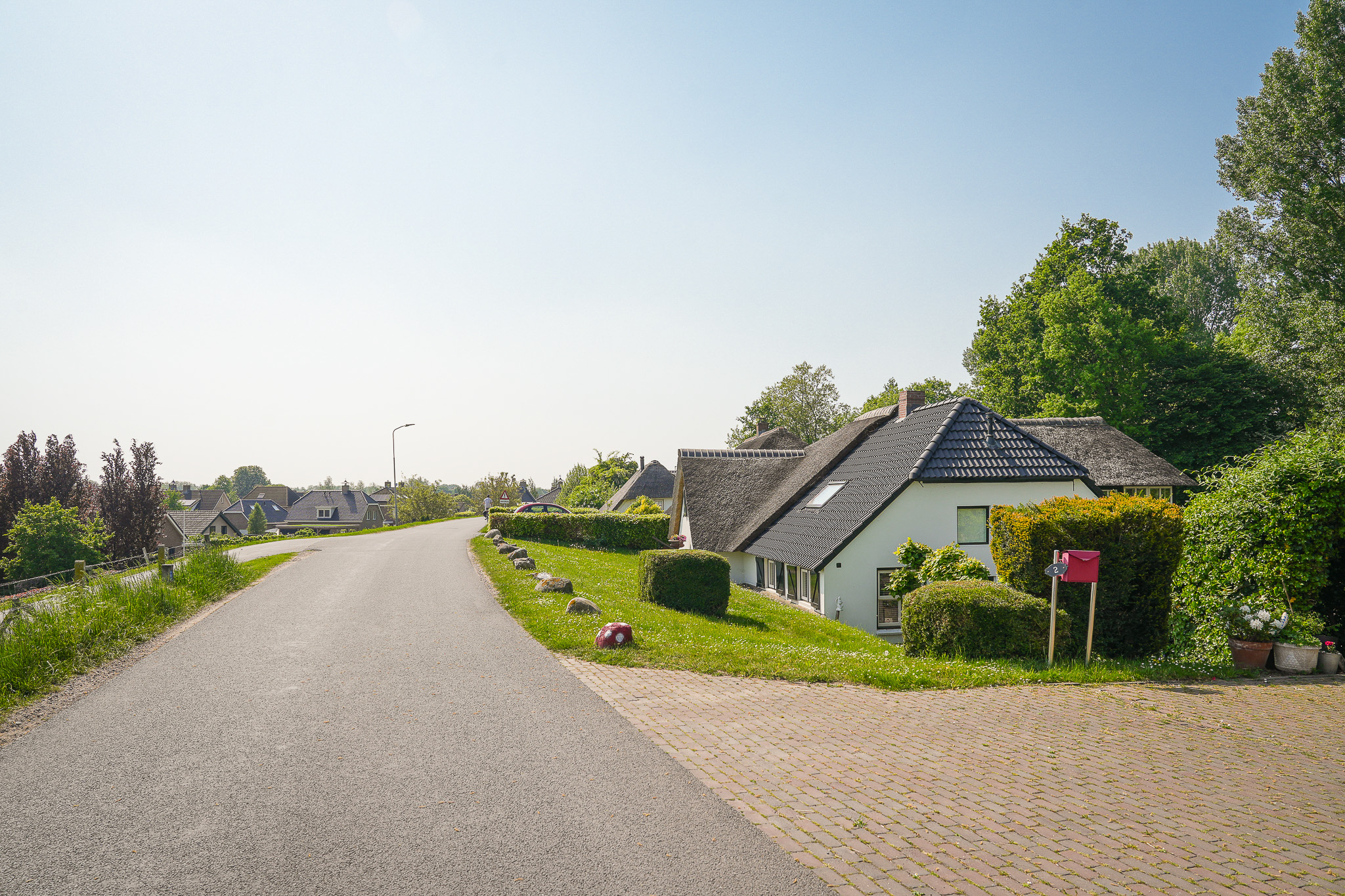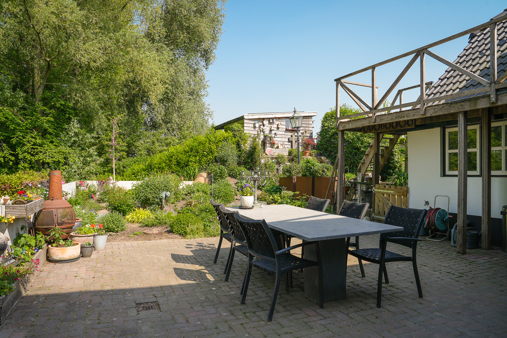 Doordat de eigenaren een solide keermuur hebben laten aanbrengen, woon je veilig aan het water. Aan de dijk staat een houten schuur en daarvoor is parkeergelegenheid voor drie auto’s.